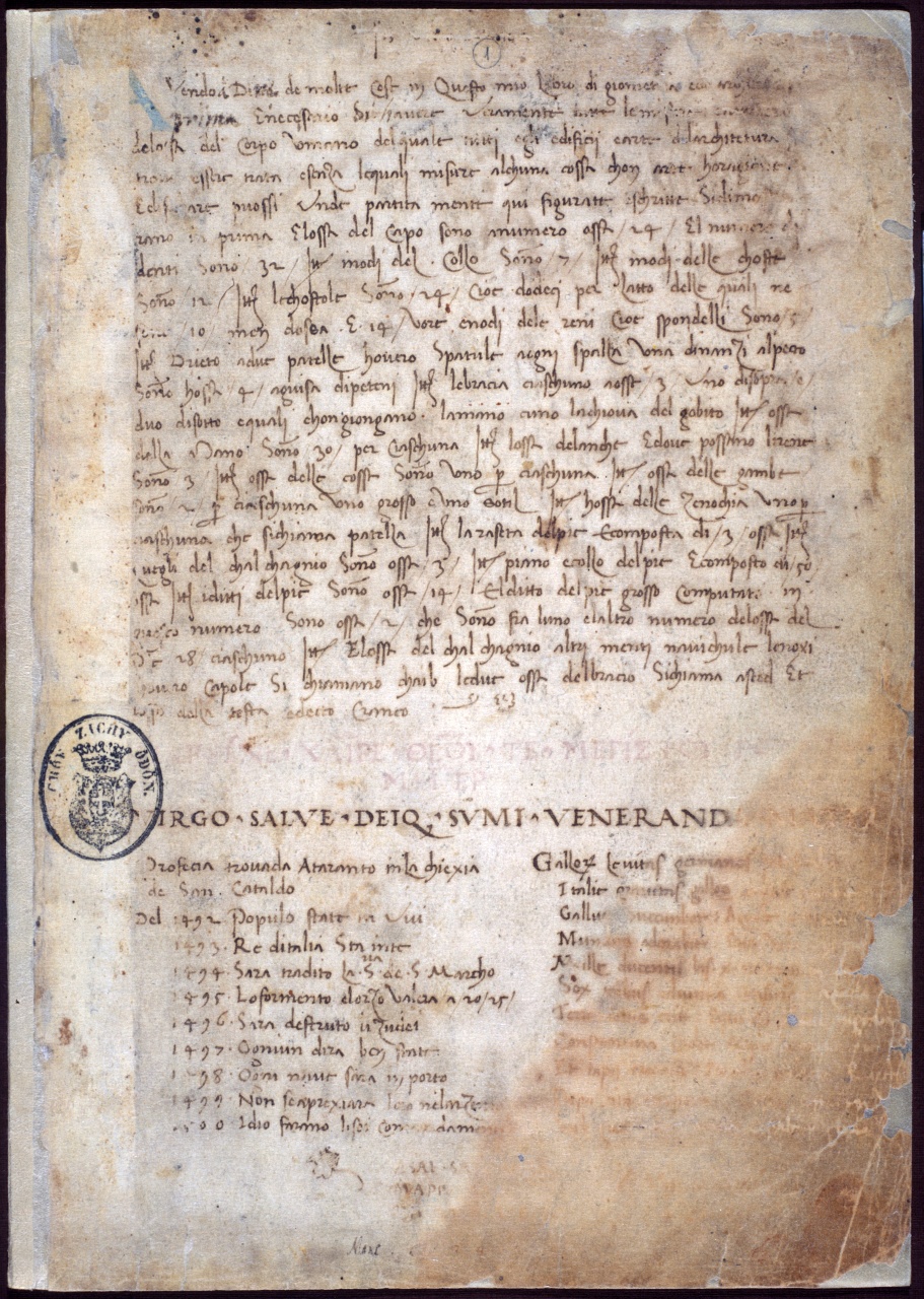 17 quegli del chalchagnio sonno ossa /3/ Item piano e|collo del|pie è|composto di /50/